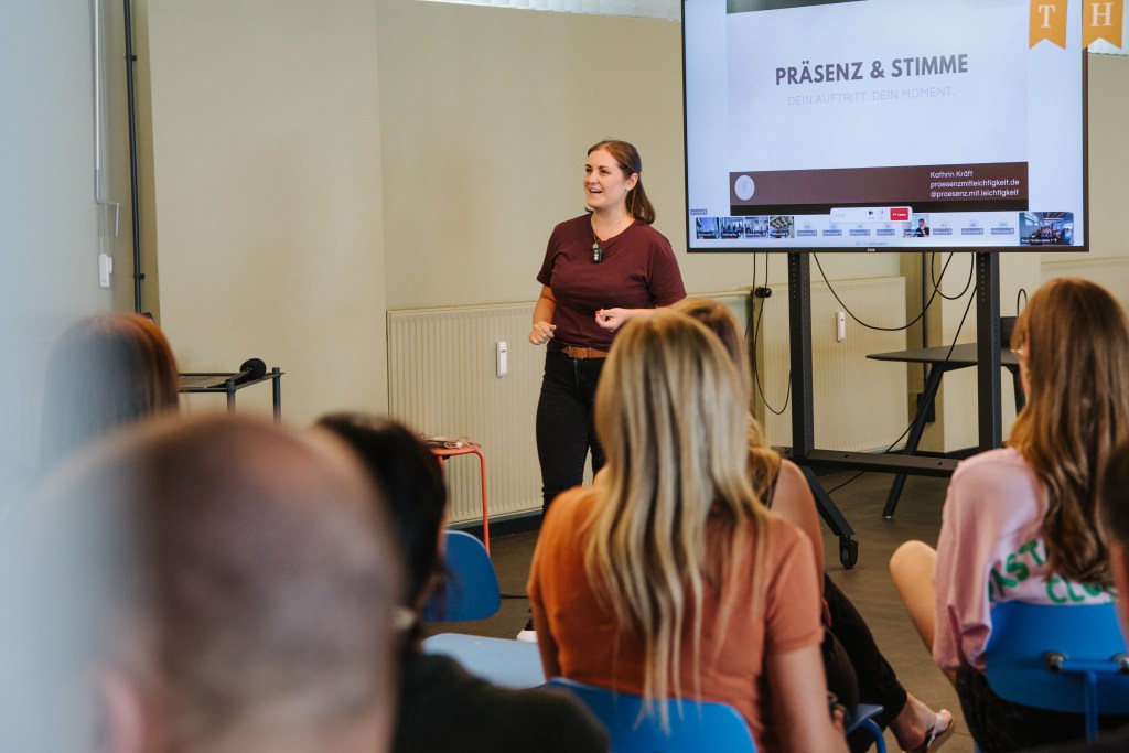 Ich leite dich individuell und praxisorientiert durch verschiedene Übungen, so dass du die ersten Veränderungen deiner Präsenz-Bausteine Körper, Stimme und Mindset schon während des Workshops feststellen wirst!